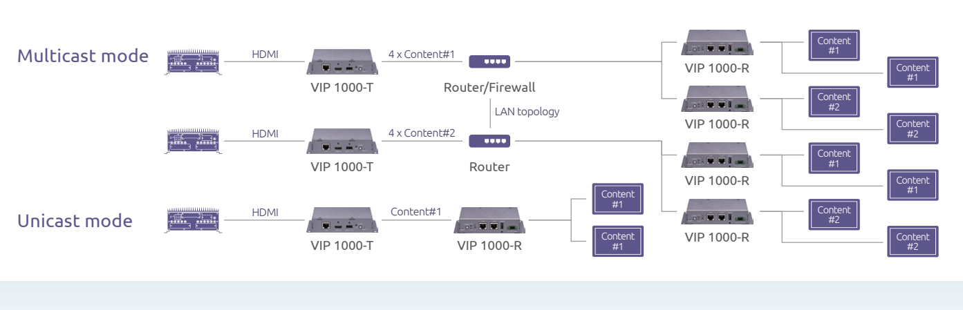 - Unicast, daisy chain and multicast support
