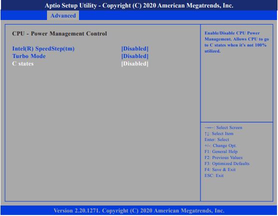 Phần này được sử dụng để cấu hình các tính năng quản lý nguồn CPU