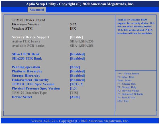 Định cấu hình phiên bản TPM. TPM 1.2 sẽ hạn chế hỗ trợ cho các thiết bị TPM 1.2 và TPM 2.0 sẽ hạn chế hỗ trợ cho các thiết bị TPM 2.0. Tính năng tự động sẽ hỗ trợ cả thiết bị TPM 1.2 và 2.0 với cài đặt mặc định thành thiết bị TPM 2.0 nếu không được tìm thấy và thiết bị TPM 1.2 sẽ được liệt kê.