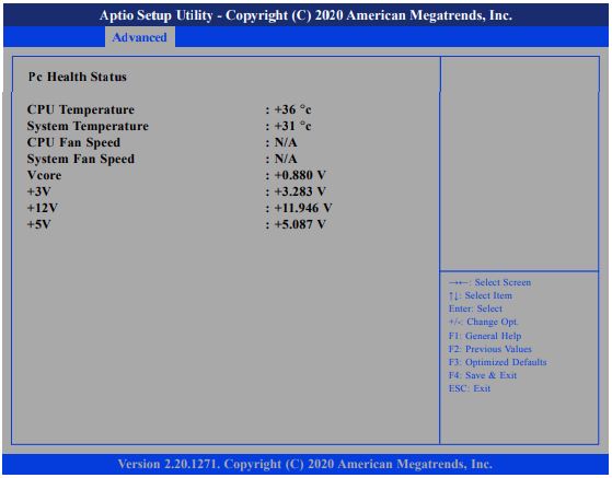 Phần này được sử dụng để theo dõi các trạng thái phần cứng như nhiệt độ, tốc độ quạt và điện áp.