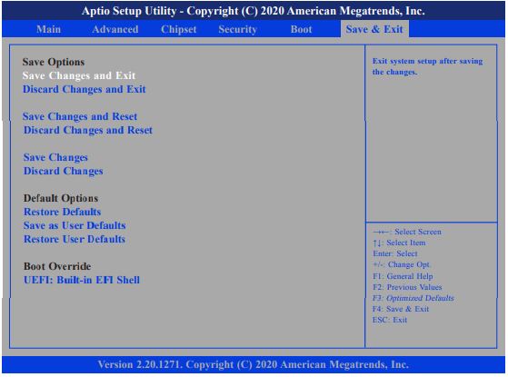 Để lưu các thay đổi và tiếp tục cấu hình BIOS, hãy chọn trường này rồi nhấn Enter. Một hộp thoại sẽ xuất hiện. Xác nhận bằng cách chọn Yes.