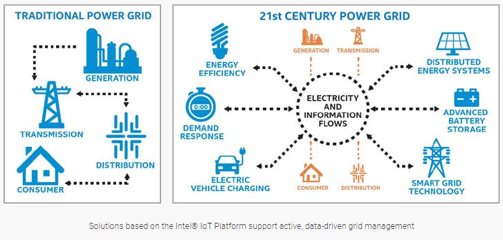 Theo truyền thống, lưới hoạt động theo một hướng. Điện được sản xuất tại nhà máy điện và được truyền tải đến người sử dụng dọc theo lưới điện. Mô hình này hoạt động tốt trong thế kỷ 20, với công nghệ thế kỷ 20 để đáp ứng nhu cầu năng lượng của thế kỷ 20. Các nhà máy điện hạt nhân hoặc đốt than có thể điều chỉnh sản lượng của mình dựa trên mức tiêu thụ dự kiến, và hệ thống ít nhiều hoạt động như cần thiết trong nhiều thập kỷ.