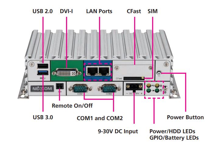 - NISE 105 có khả năng tích hợp cao với mô-đun mini-PCIe tùy chọn và 4 cổng x COM, điều này làm cho nó trở thành một hệ thống thông minh thực sự cho các ứng dụng tự động hóa nhà máy, ứng dụng mạng (với tùy chọn GbE LAN, Wi-Fi, 3.5G/Mô-đun 4G LTE) và các ứng dụng truyền thông (với GPIO tùy chọn, RS232/422/485).