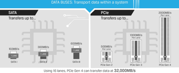 Lưu trữ vượt trội: Các ổ cắm PCIe truyền dữ liệu nhiều hơn 25 lần so với SATA tương đương.