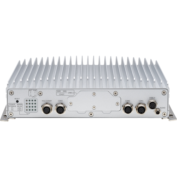 Intel® Core™ 9th Gen i7-9700TE, 2 x 4GB industrial-grade memory, VGA output, 2 x internal 2.5” tray, 1 x CFast, 2 x LAN, 4 x PoE 802.3af/at (total 60W), 2 x mini-PCIe slot, 2 x M.2 slot, 2 x SIM socket