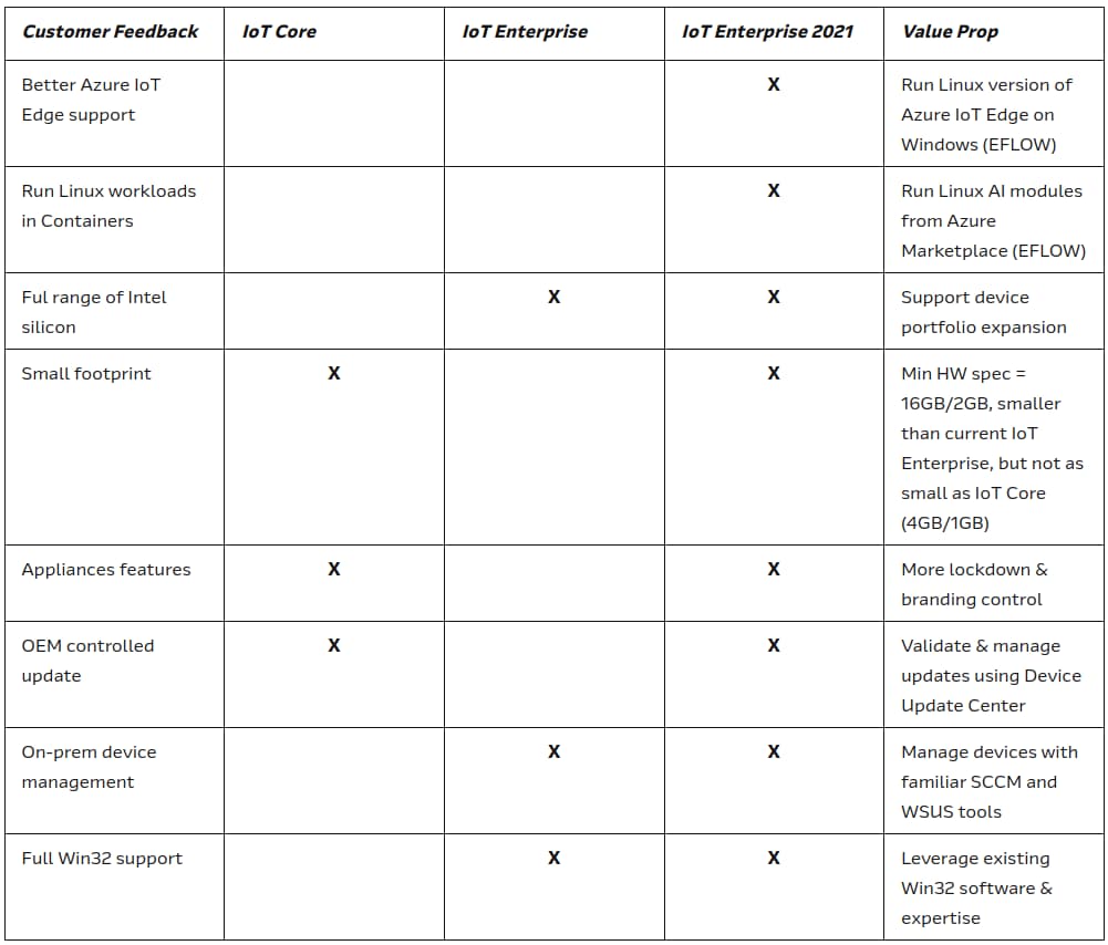 Windows 10 IoT Enterprise LTSC 2021 là phiên bản cung cấp nhiều tính năng hơn so với phiên bản trước của Windows IoT Enterprise. Các tính năng mới tập trung vào việc giảm giá thành và tăng cường kết nối và khả năng tương thích của hệ sinh thái IoT tổng thể.